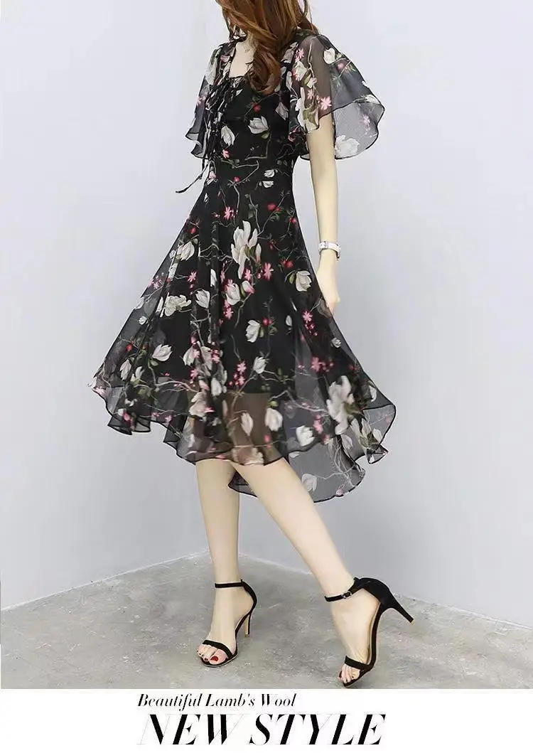Women floral Chiffon Flower Dress 2025 trends new in Ladies Elegant V Neck short Sleeve korean style Summer Dress Female Clothes